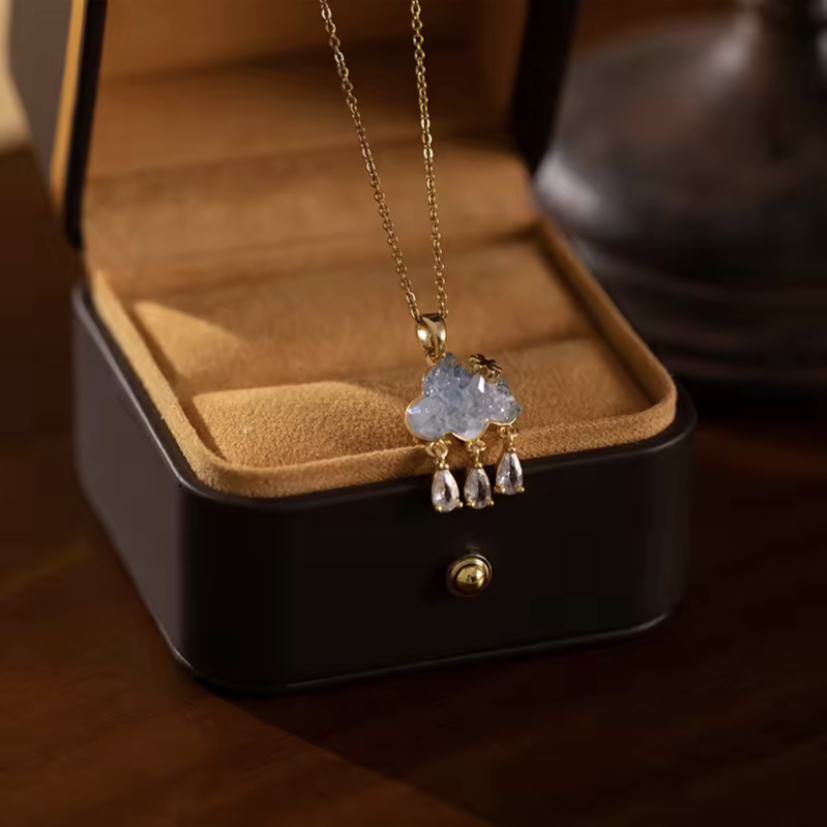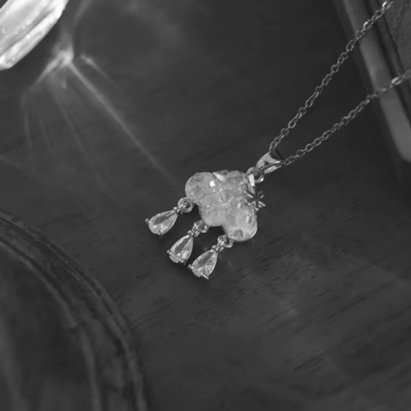 - Süße Wolken Halskette mit beweglichen Regentropfen
